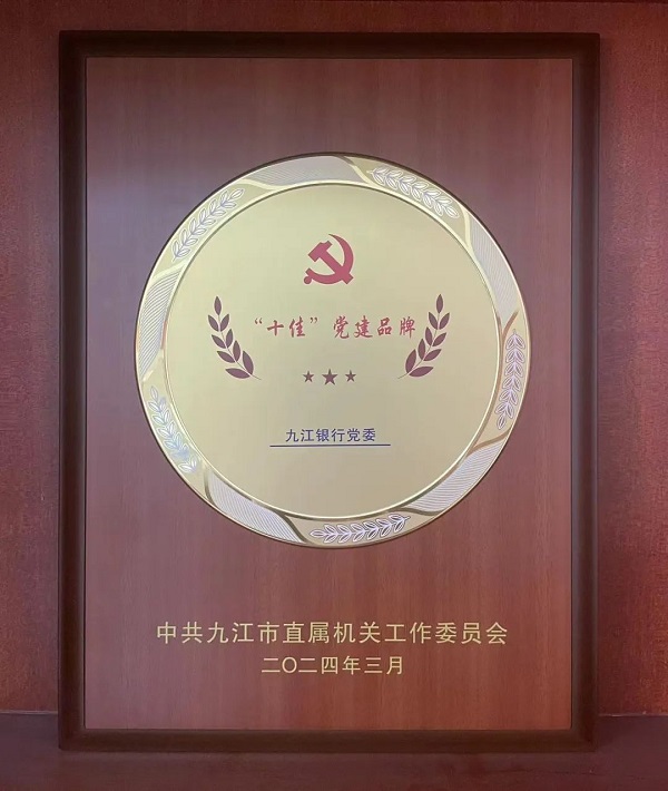 3月28日,2024年度全市机关党的工作会议召开,会上通报了九江市直各单位党组织党建“一单位一品牌”建设情况,九江银行党委“九久‘红’银”党建品牌荣获“市直单位‘十佳’党建品牌”称号。