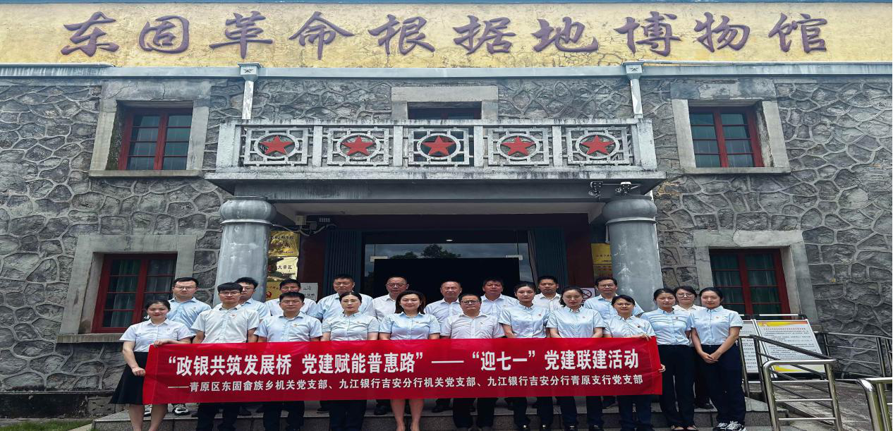 九江银行吉安分行党委联合青原区东固畲族乡机关党支部,走进“东井冈”东固革命根据地,开展“政银共筑发展桥 党建赋能普惠路”——“迎七一”党建联建活动。全体党员在党旗前重温入党誓词,怀着崇敬之情向黄公略烈士敬献花圈。在东固革命根据地博物馆内,一张张泛黄的历史照片、一件件庄重的革命遗物,让党员们深刻感悟到了艰苦奋斗的“东井冈”精神,进一步坚定理想信念,筑牢信仰之基。